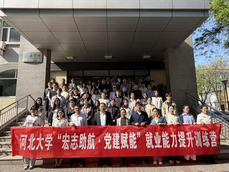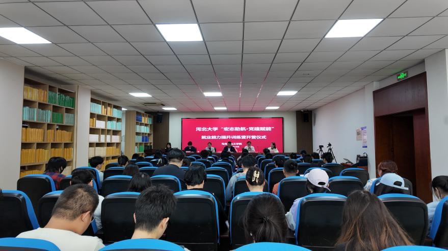 为深入落实高校毕业生高质量充分就业工作要求,精准对接大中型企业党建人才需求,强化学生就业核心竞争力,2026年4月18日,河北大学创新创业指导中心联合马克思主义学院成功举办“宏志助航・党建赋能”就业能力提升训练营开营仪式。