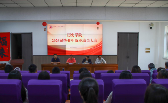 为帮助2026届毕业生增强职业规划能力、提升就业竞争力,近日,历史学院在敏学楼报告厅召开2026届毕业生就业动员会。学院党委书记肖红松、党委副书记李金闯、副院长魏国栋、郭晓勇,学工干部、毕业班辅导员和2026届本硕博毕业生共同参会。