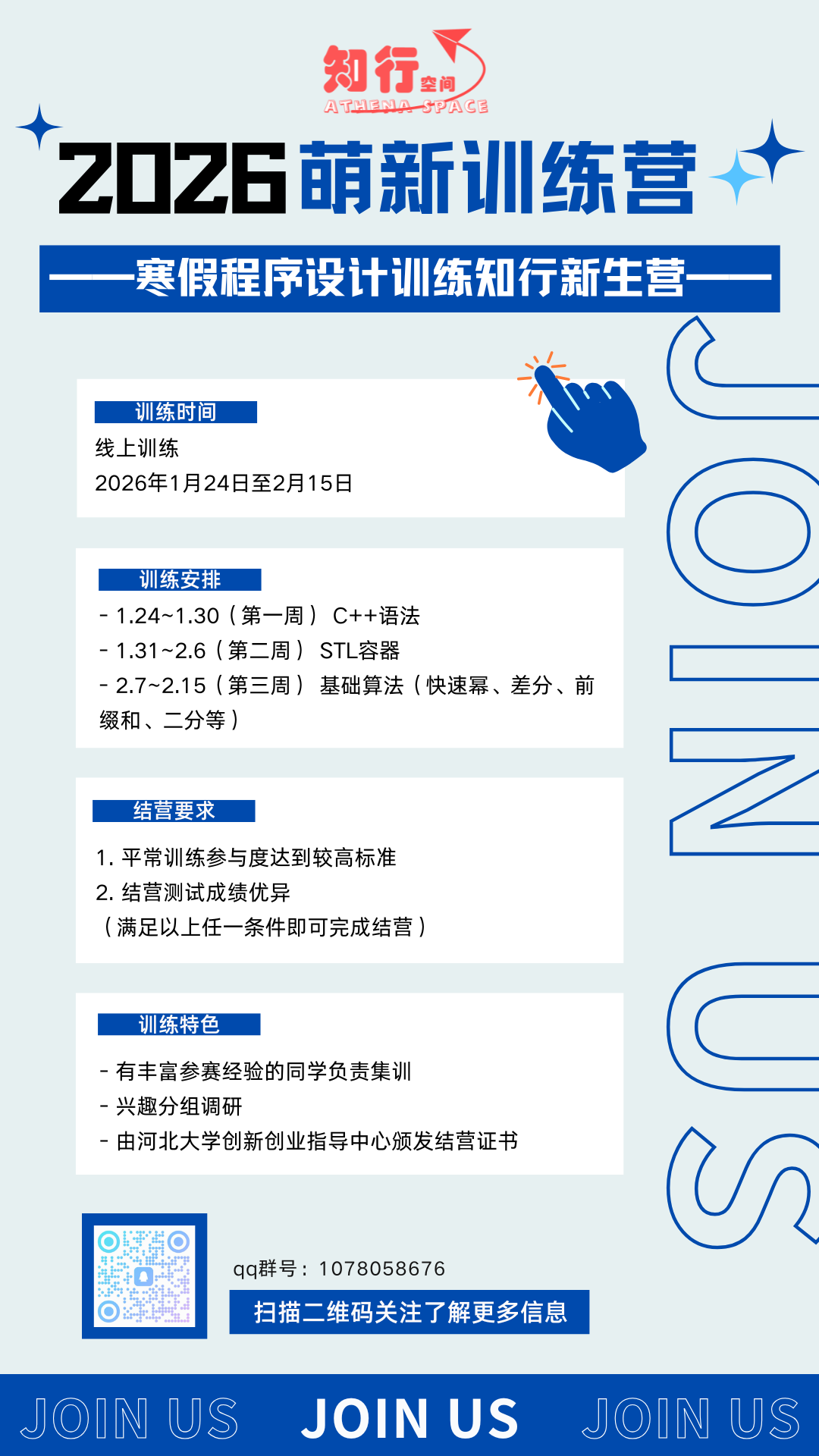 期末来临,寒假将近,由河北大学创新创业指导中心指导,网络空间安全与计算机学院主办的2026年寒假程序设计训练营重磅回归!这是自2017年起的第十届寒假训练营,继续面向全校学生公益开营,学员免费参训,达到结营标准即可获得由学校创新创业指导中心认证的结营证书。本届寒假训练营为新生营,无论你是计算机类大一新生,还是对编程满怀好奇的非计算机专业各年级同学,只要心中有热爱,这里就是你的起点!